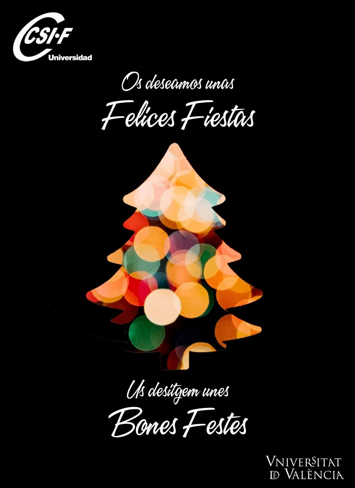 La Sección Sindical de CSIF en la Universitat de València os desea Feliz Navidad y un próspero Año Nuevo 2026