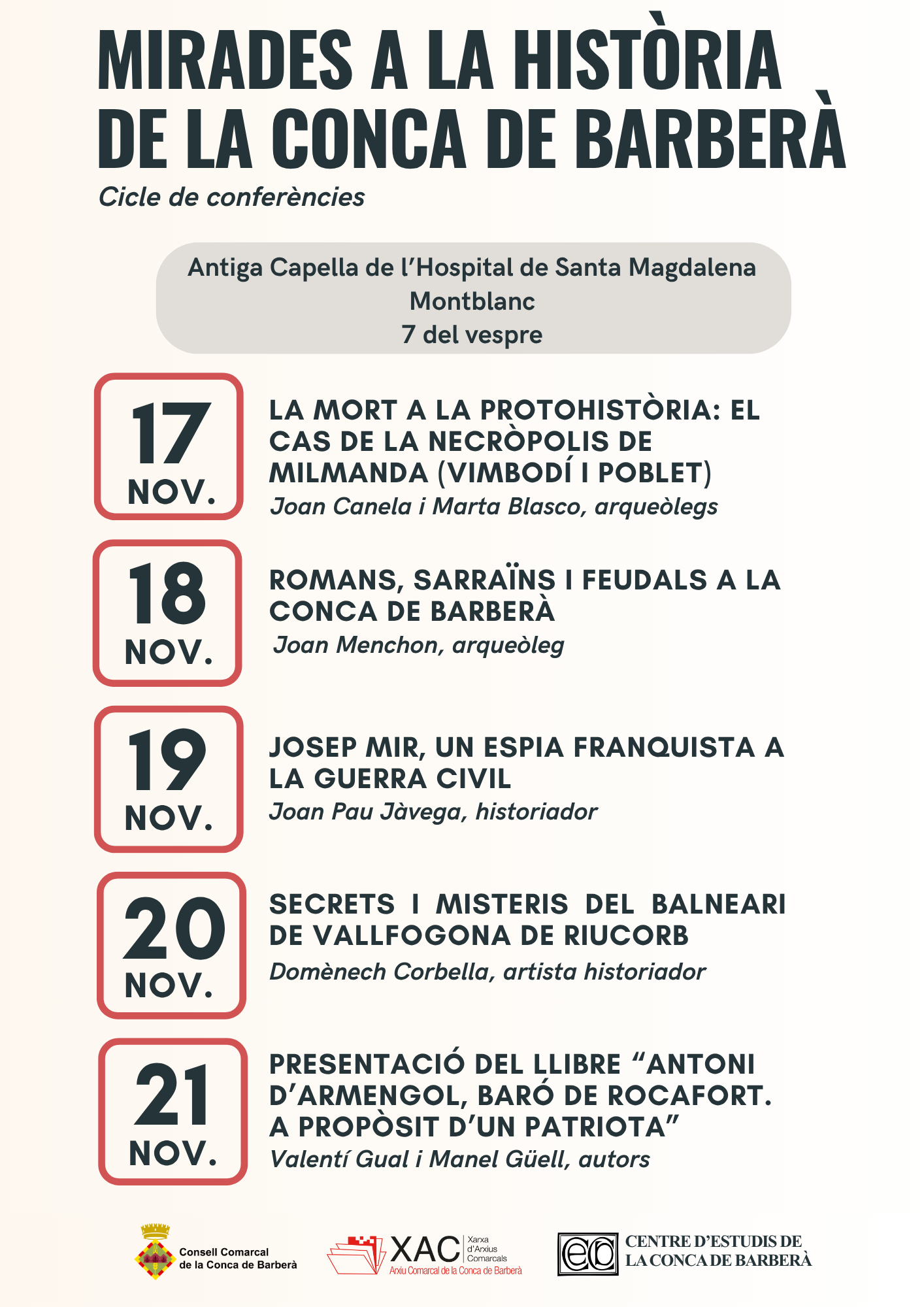 Dentro de las actividades culturales promovidas por el Consejo Comarcal de la Conca de Barberà, sobre el proyecto de excavaciones arqueológicas de la necrópolis de Milmanda, proyecto impulsado desde el ICAC (Tarragona).