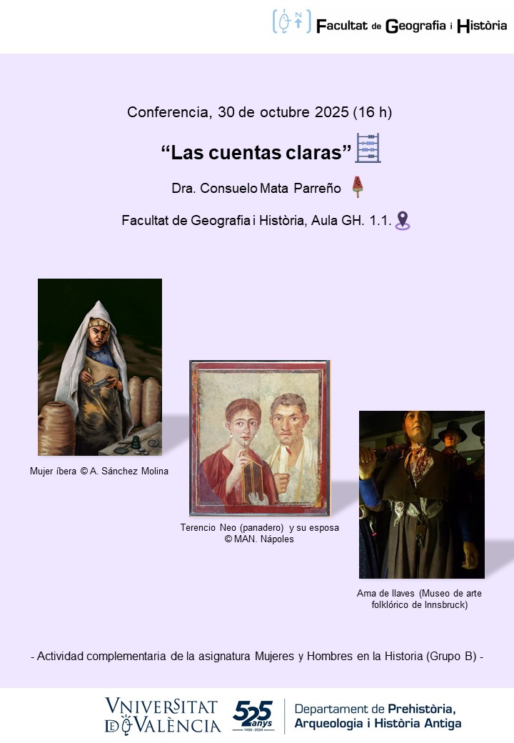 La Dra. Consuelo Mata Parreño impartirá la conferencia "Las cuentas claras" dentro de las actividades de la asignatura "Mujeres y hombres en la Historia" (Grup B).