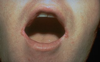 La candidiasis epidérmica perioral o perleche se caracteriza por el desarrollo de placas con ulceraciones superficiales y fisuración afectando a las comisuras labiales.