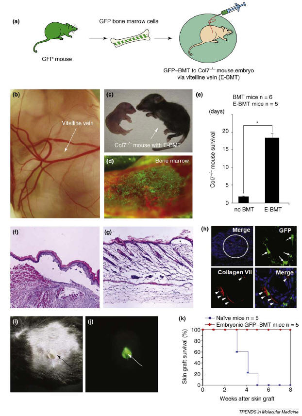 de GFP-medula ósea embrionaria; Los injertos cutáneos fueron
