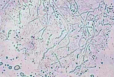 En las infecciones fungicas superficiales, el rascado de las escamas y su posterior incubación con KOH, permite visualizar las hifas y esporas de los dermatofitos