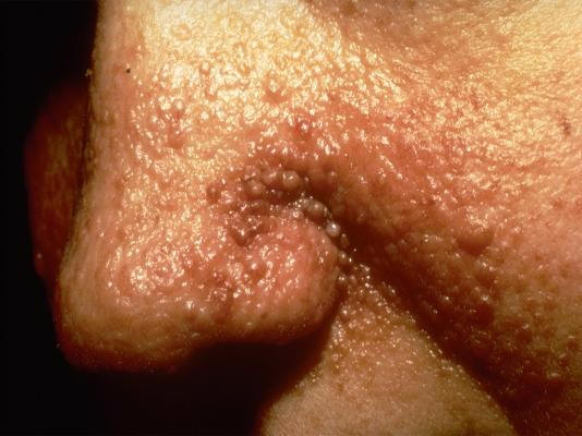 Caso 6. Paciente de 50 años que durante los últimos 10 años ha desarrollado de forma progresiva lesiones cutáneas que se observan en la imagen.