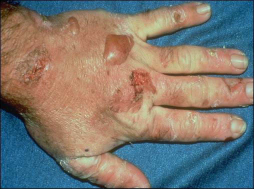 8. Caso clínico 8. Paciente de 30 años, que consulta por mal estado general y en la exploración se observan las lesiones que se muestran en la imagen