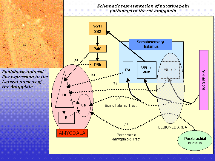 Unconditioned stimulus pathways to the amygdala: effects of lesions of