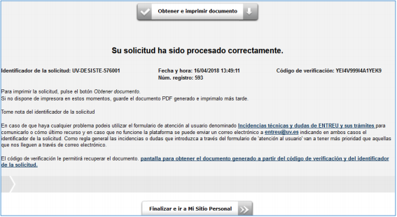 At that moment, the application for the procedure which is to be waived or withdrawn will automatically switch to phase 900-DESISTIDO (withdrawn) or 901-RENUNCIADO (waived). A notification will be sent to each procedure manager so that they can notify third parties if necessary and, subsequently, prepare the final resolution document to finally notify the applicant with the status of the procedure after said waiver/withdrawal.