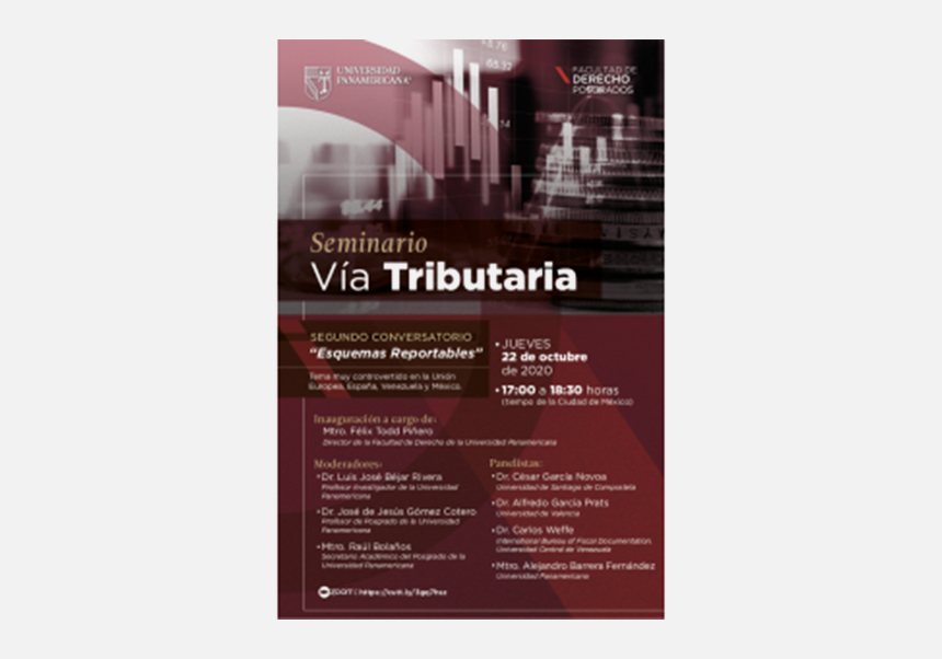 El Prof. García Prats, miembro del Grupo ETICCS, participará en el seminario Vía Tributaria de la Universidad Panamericana 22/10/20 Alfredo García Prats, Catedrático de Derecho Financiero y Tributario de la Universitat de València y director del Grupo ETICCs, participará el jueves 22 de Octubre a las 17 h. (tiempo de la Ciudad de...[Leer más]