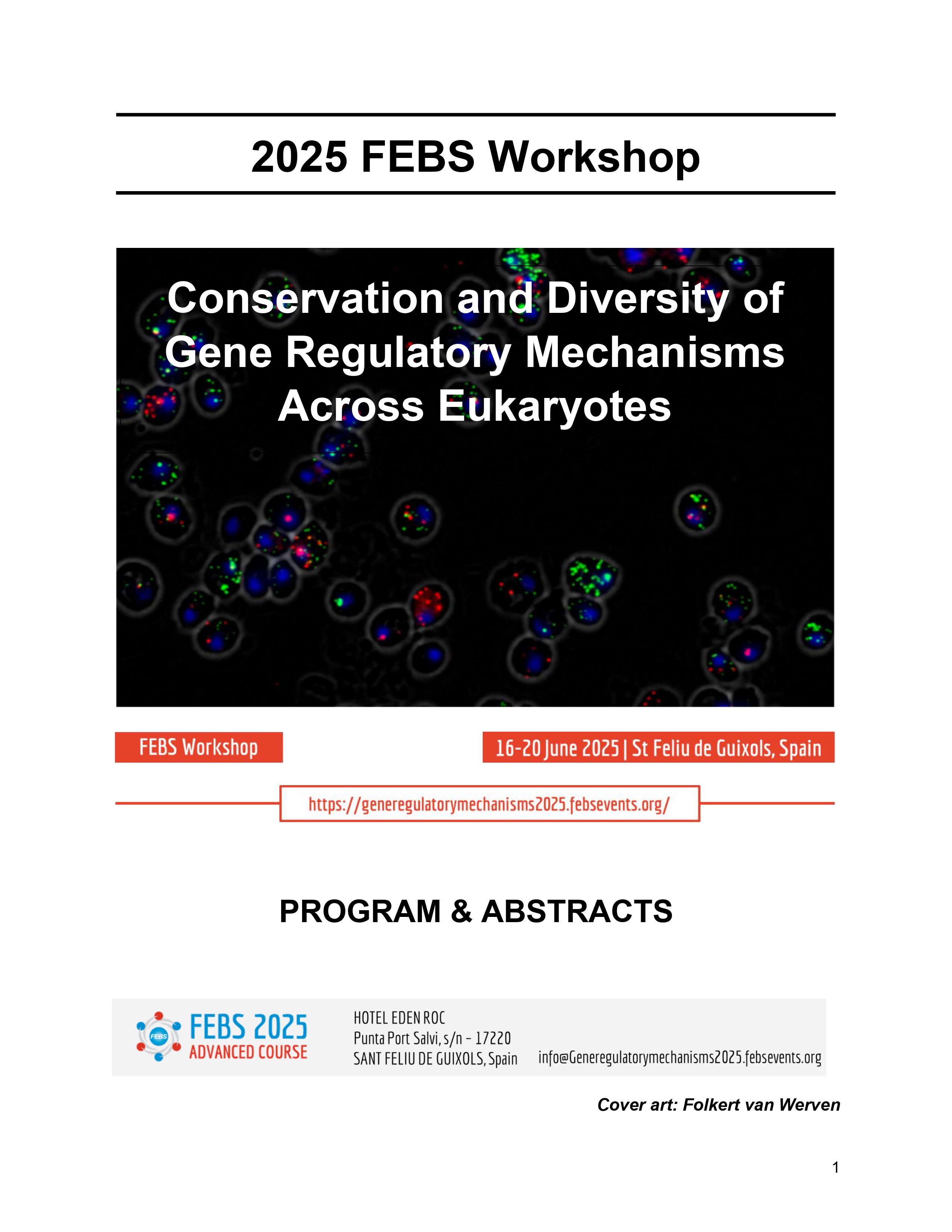 From June 16 to 20, 2025, PhD student Samoa Prieto took part in the FEBS Workshop “Conservation and Diversity of Gene Regulatory Mechanisms across Eukaryotes”.