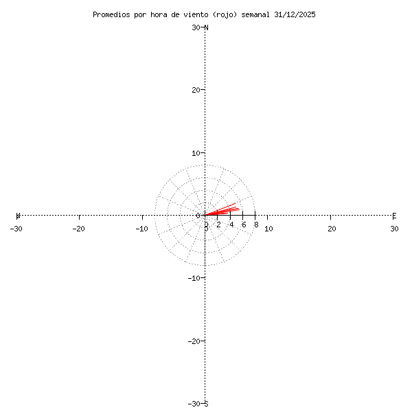 Mitjana per hora de vent (roig) i ratxa (verd) per setmana - Promedio por hora de viento (rojo) y racha (verde) por semana - Wind (red) and gust (green) averages by hour weekly