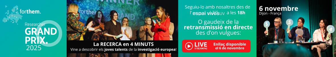 Després de l'èxit aclaparador de 2024, el Gran Premi FORTHEM per a Investigadors torna el 2025 i farà un pas més enllà amb la participació de les 9 universitats sòcies. Mantingueu-vos informats sobre la semifinal local de la UV, que tindrà lloc el pròxim divendres 26 de setembre, i l'emocionant esdeveniment final, que se celebrarà el 6 de novembre a la Université Bourgogne Europe a Dijon.