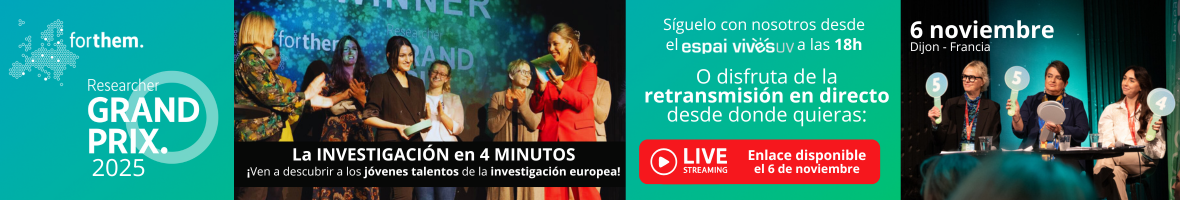 Tras el rotundo éxito cosechado en 2024, el Gran Premio FORTHEM para Investigadores vuelve en 2025 y dará un paso más allá con la participación de las nueve universidades asociadas. Mantente al tanto de la semifinal local de la UV, que tendrá lugar el próximo viernes 26 de septiembre, y de la emocionante final, que se celebrará el 6 de noviembre en la Université Bourgogne Europe de Dijon.