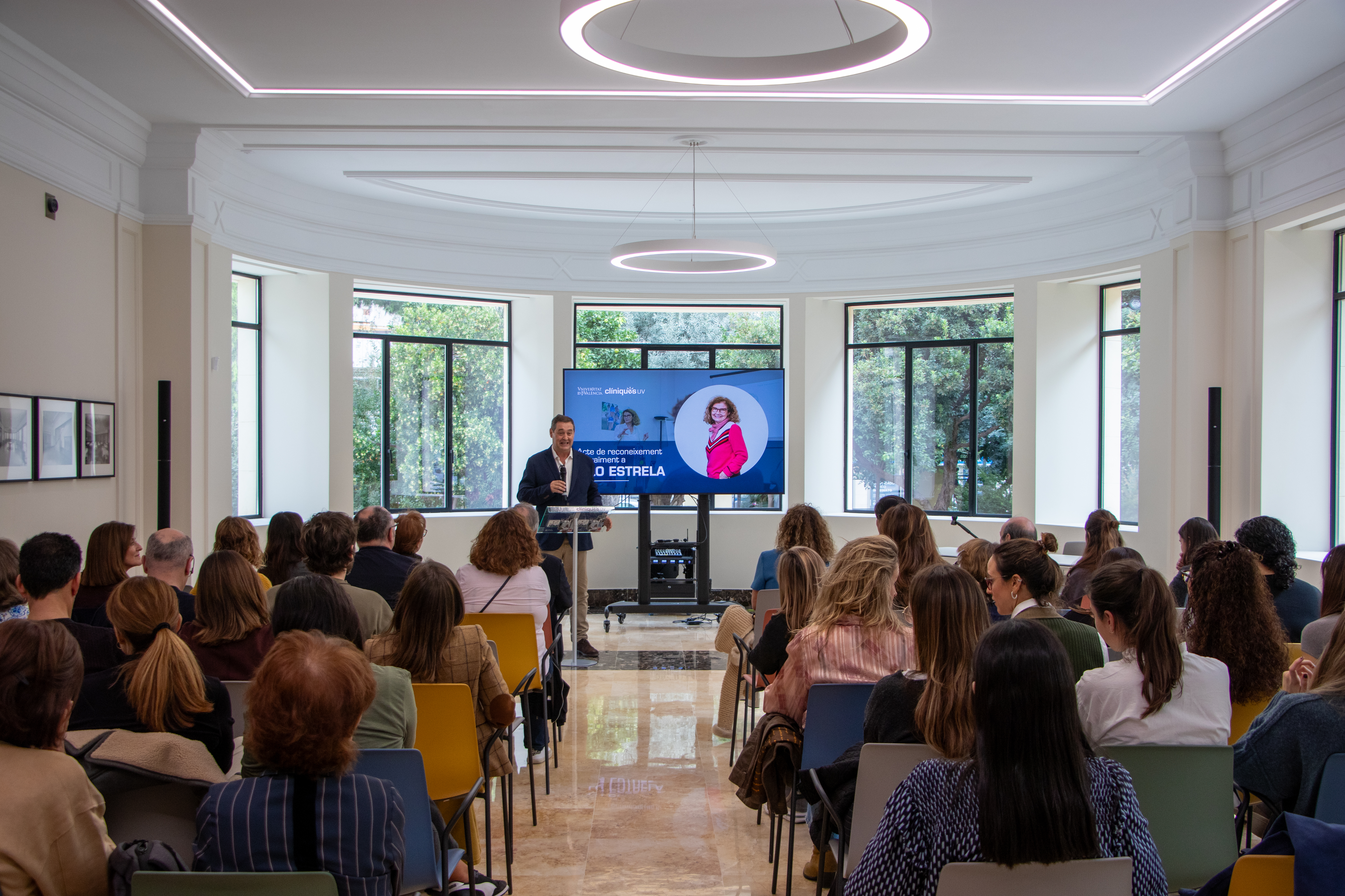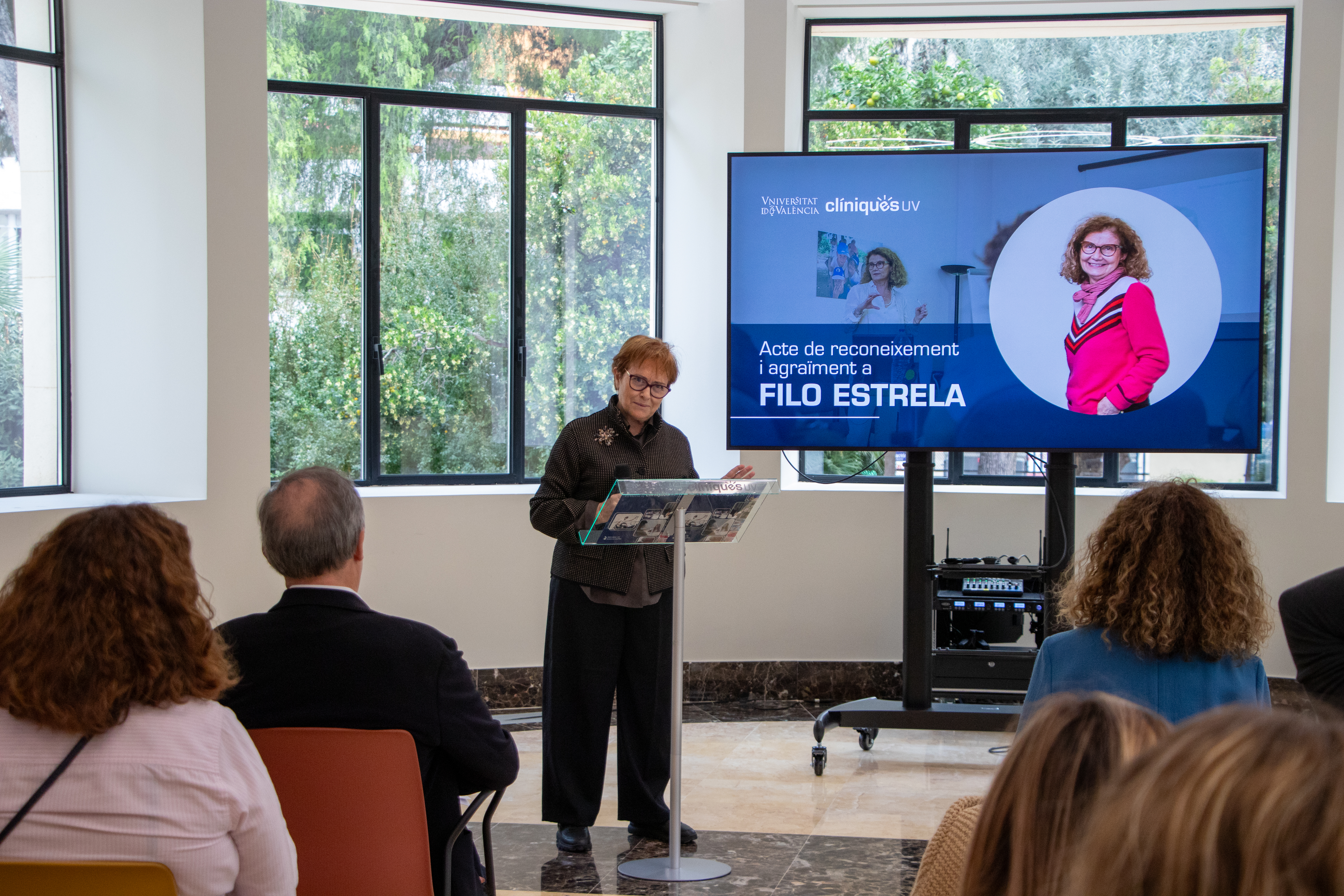 L’acte, organitzat per ClíniquesUV, va comptar amb la participació de diverses persones vinculades al seu àmbit professional que varen intervindre amb paraules de reconeixement a la figura de la Dra. Estrela. Hi van estar la Dra. Montserrat Català, directora del Màster de Formació Permanent en Odontopediatria; la Dra. Lucía Fernández, directora actual de la Clínica d’Odontologia; el Sr. Joan Mansanet, gerent de ClíniquesUV; i el Dr. José Manuel Almerich, director general de ClíniquesUV. Tots ells van recordar la seua dedicació, la seua contribució a la formació clínica universitària i l’impacte que ha deixat en generacions d’estudiantat i professionals.