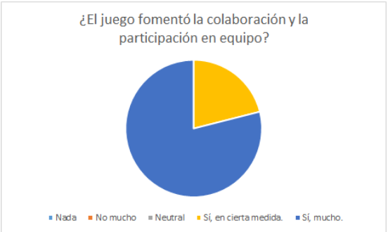 El análisis cualitativo profundiza en la experiencia vivida por los estudiantes durante las sesiones de juego. Se recopilaron testimonios y comentarios que resaltan el gran interés y compromiso demostrado por los estudiantes hacia el desarrollo de la actividad. Los estudiantes expresaron su entusiasmo por participar activamente en la creación de las preguntas y en las sesiones de juego, destacando la sensación de diversión y aprendizaje que experimentaron. Además, el hecho de que los estudiantes optaran por continuar con el juego durante el descanso del almuerzo indica no sólo un alto grado de motivación, sino también un fuerte sentido de comunidad y compañerismo entre los participantes. En resumen, el análisis cualitativo confirma el impacto positivo de la actividad en la motivación y el compromiso de los estudiantes, así como en su interés por el aprendizaje de los contenidos de la asignatura.