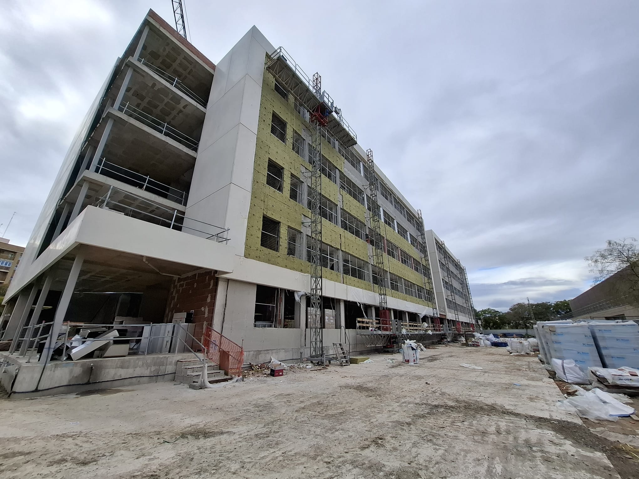 Consequently, a new classroom building is being built on the Tarongers Campus. The building, situated in alignment with the north an south façades of the current West Classroom Building and next to it, will comprise five floors above ground level and one below ground level. The functional programme basically houses classrooms of varying dimensions and flexible configuration, designed to meet the requirements of the faculties of Teacher Training and Social Sciences.
