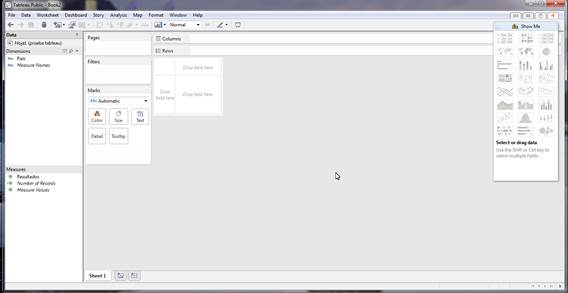 dos variables (país y resultados) aparecen ya, más abajo, en Tableau y hacemos click en "Go to Worksheet" para