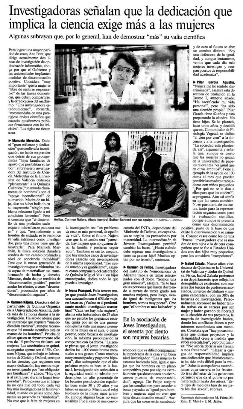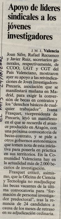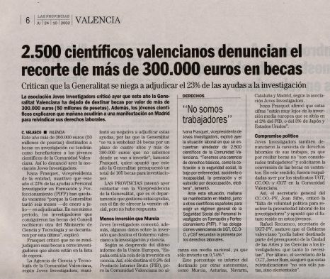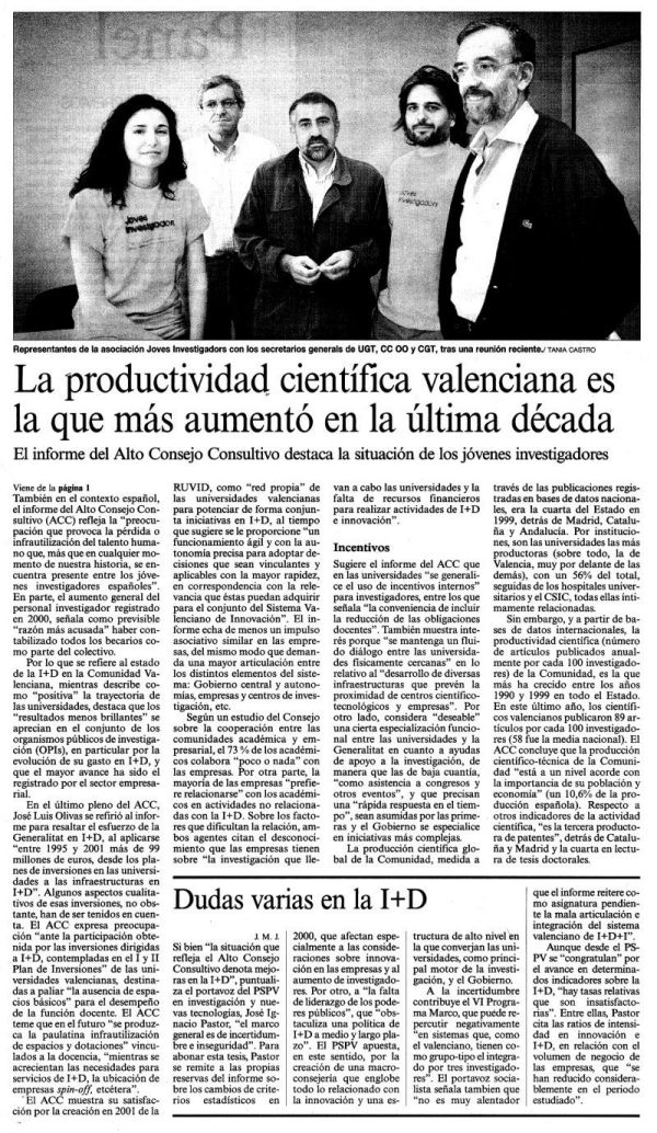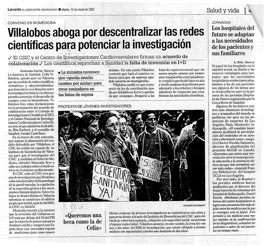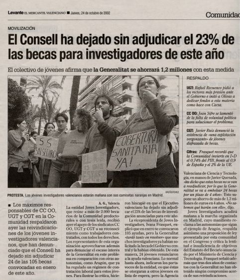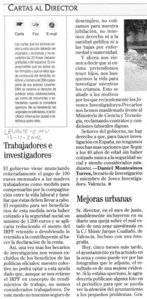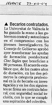 | Levante 8-6-2001 | "Los investigadores jóvenes se encierran para exigir un estatuto " | |