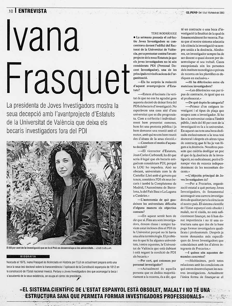 | El Punt (13-4-2003) | "Entrevista: Ivana Frasquet" full1 full2 full3 | |