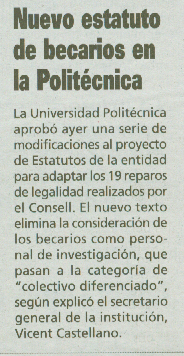"Nuevo Estatuto de Becarios en la Politécnica" |