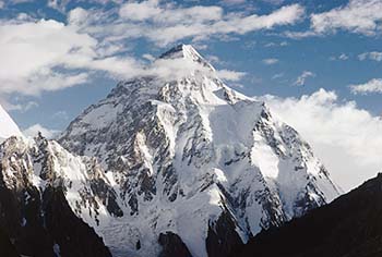 K2 - 8.611 m. El CHOGORI, "La Gran Montaña", se encuentra situada en Baltoro Mustahg en la frontera entre Pakistán y China. |