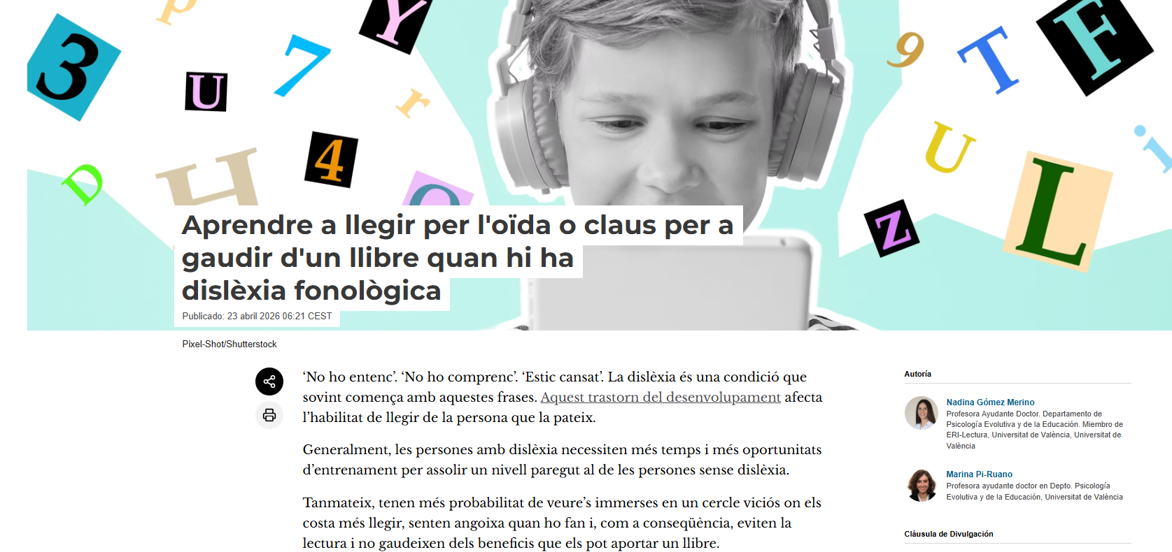 - Nadina Gómez-Merino. Codirectores: Antonio Ferrer, Inmaculada Fajardo y Bárbara Arfé. Títol: Reading in Students with deafness: An eye movement research / Lectura en Estudiantes con sordera: Una investigación con movimientos oculares. Data de defensa: 2020.