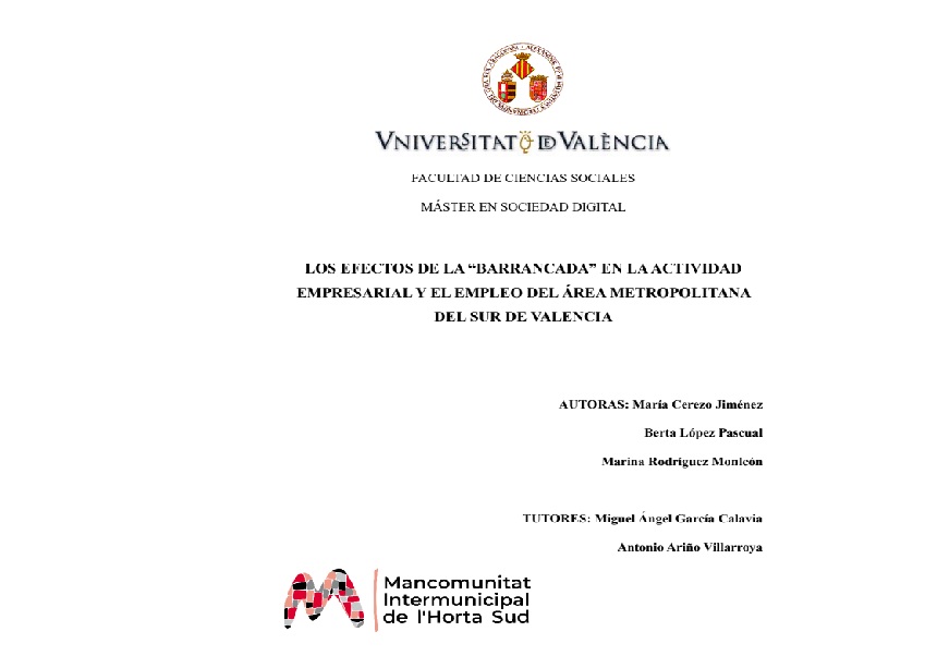 Presentación Informe Los efectos de la “barrancada” en la actividad empresarial y el empleo del área metropolitana del sur de Valencia 29/10/25