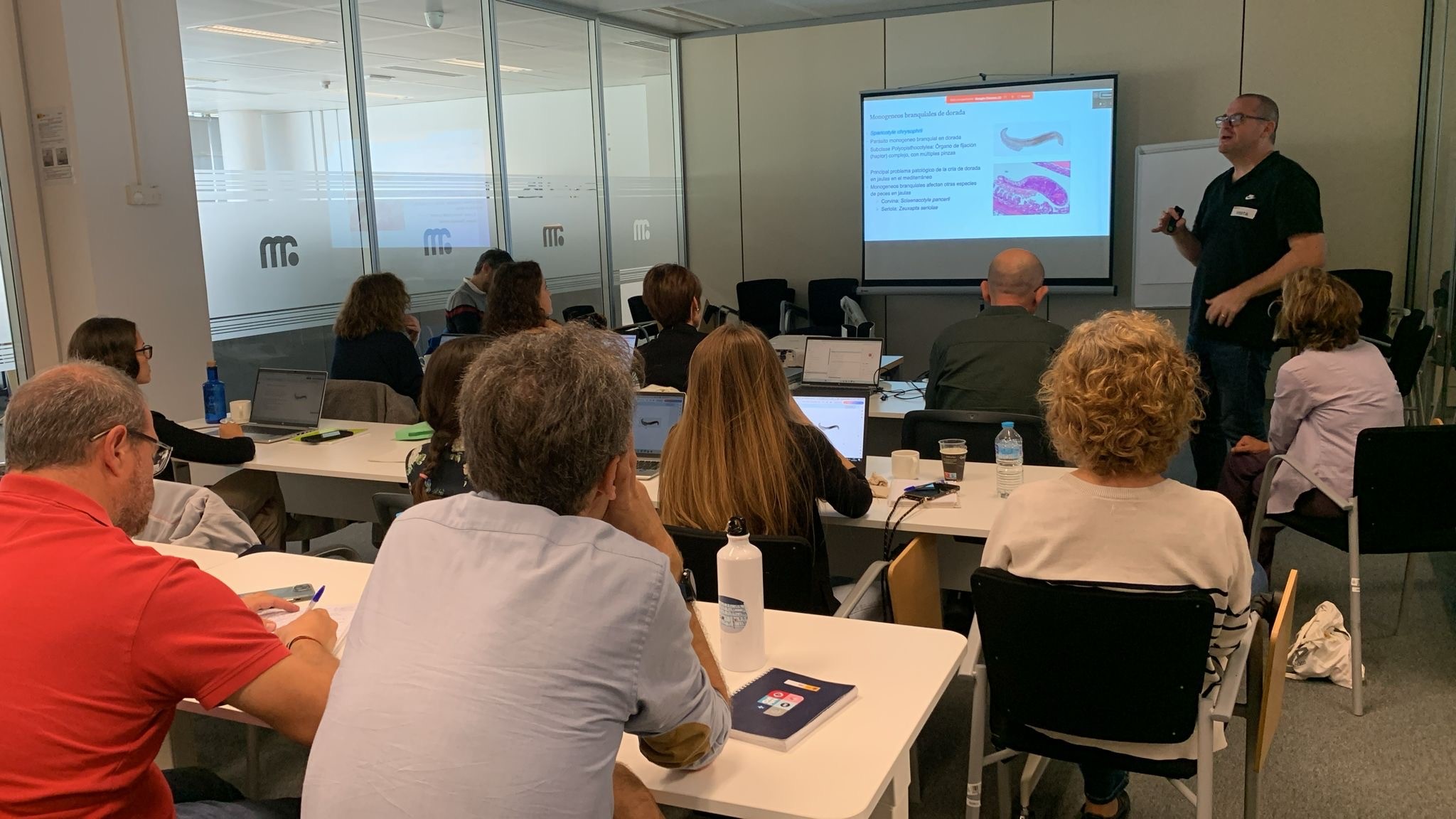 La profesora Belén Fouz Rodríguez del departamento de Microbiología y Ecología de la Universitat de València, co-directora del máster en Acuicultura, participó como ponente en el curso de formación interna en Acuicultura que la AEMPS organizó entre los días 20 y 23 de octubre de 2025 en su sede en Madrid. B. Fouz impartió la sesión “Principales patologías”, junto con el veterinario de Skretting España, Carlos Zarza.