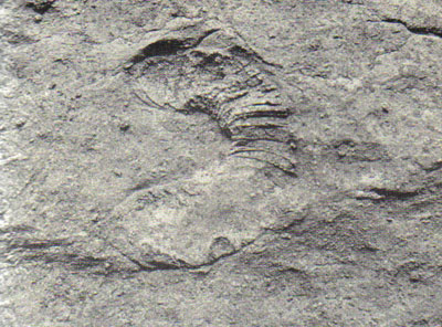 Figure 4. View of a cyrtoconic Ordovician nautiloid preserved in an upright position. The quarry in the Ordovician at Såtatorp, Kinnekulle, Västergötland, Sweden.