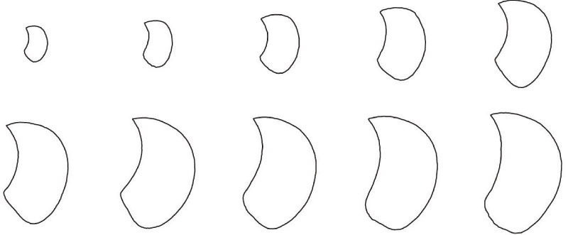 FIGURE 13. Series of some outlines of whorl sections of the studied gastropod shell through ontogeny.