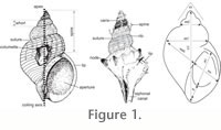 The most important set of morphological characters of gastropods resides in the geometry of their shell. However, the shell geometry is difficult to capture by conventional descriptive, qualitative and discrete approaches. For instance, the investigation of the shell geometry has largely been limited to basic two-dimensional measurements such as width of aperture, shell diameter, or apical angle (Figure 1). Such characters poorly capture the subtle differences of shell geometry, and their relevance is thus rather limited. Due to its accretionary mode of growth, the gastropod shell preserves its entire post-hatching ontogeny. The ontogenetic changes of shell geometry constitute a potential additional relevant set of characters. However, to date, ontogenetic studies of molluscs remain rare, qualitative and descriptive; usually the mature stage of the shell is given the greatest emphasis. Hence, the developmental characteristic of mollusc shells remains largely under exploited. The mollusc shell is thus in need of an adequate, quantitative and descriptive method to better take advantage of its excellent fossil record in palaeontological and evolutionary studies.