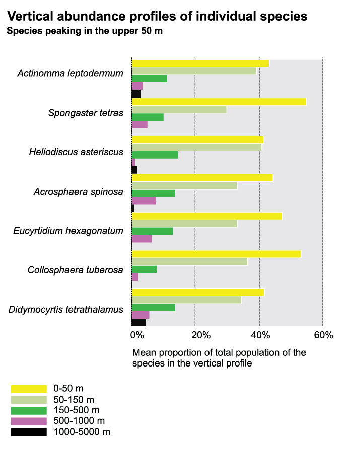 Figure 230. Vertical abundance profiles of species peaking in the upper 50 m.