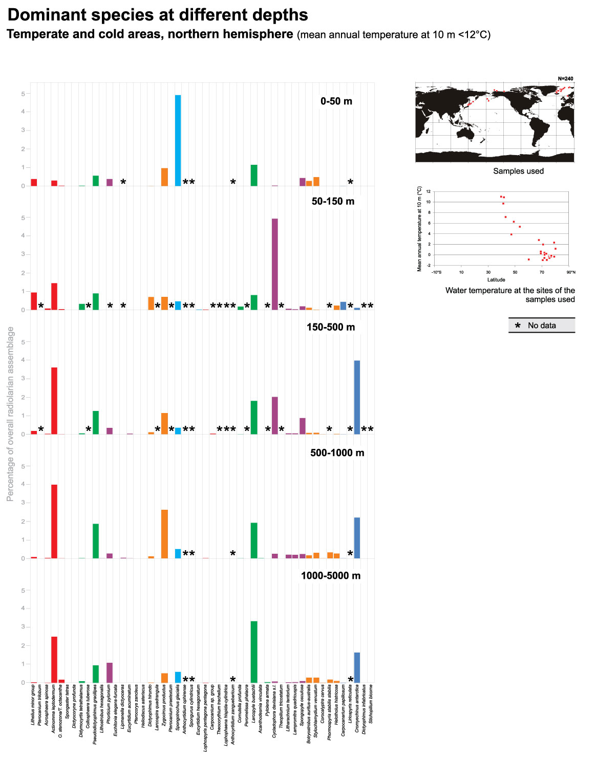 Figure 236. Dominant species at different depths intervals in temperate and cold areas, northern hemisphere only (mean annual temperature al 10 m <12°C).