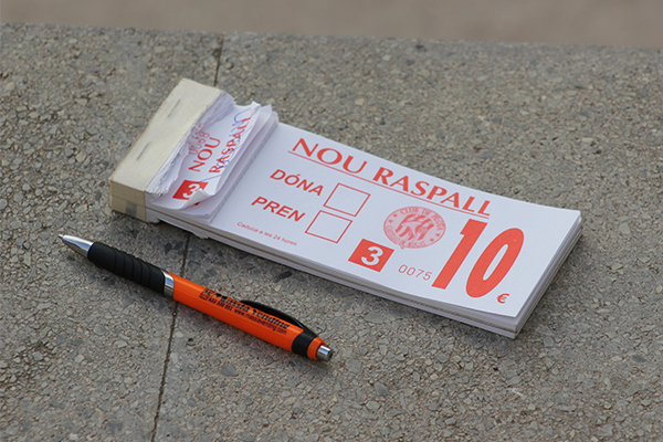 Rapall and escala i corda are the sole modalities with professional players in contract. Its main characteristic is that the ball is played on the ground and players use the raspada, a hit with the hand dragged on the ground, hence its name. Points are obtained when the ball crosses a line at the end of the rival field.