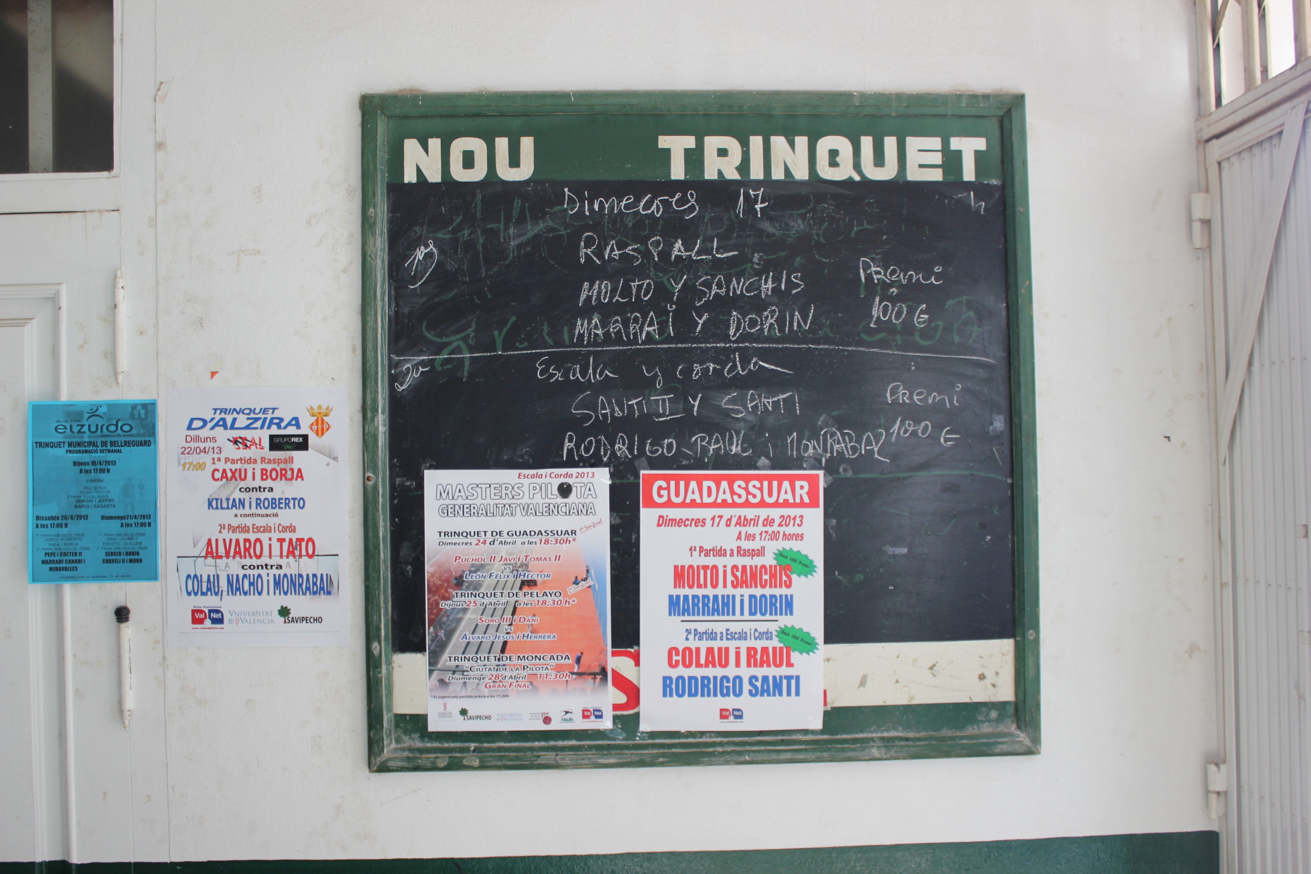 A trinquet is an indoors game field that is rectangular with varying measurements depending on modalities. Generally used for Escala i Corda and Raspall, it is also used for Galotxa. They originated from tripots, which were pretty similar to the current French trinquets- A reference facility of Valencian pilota.