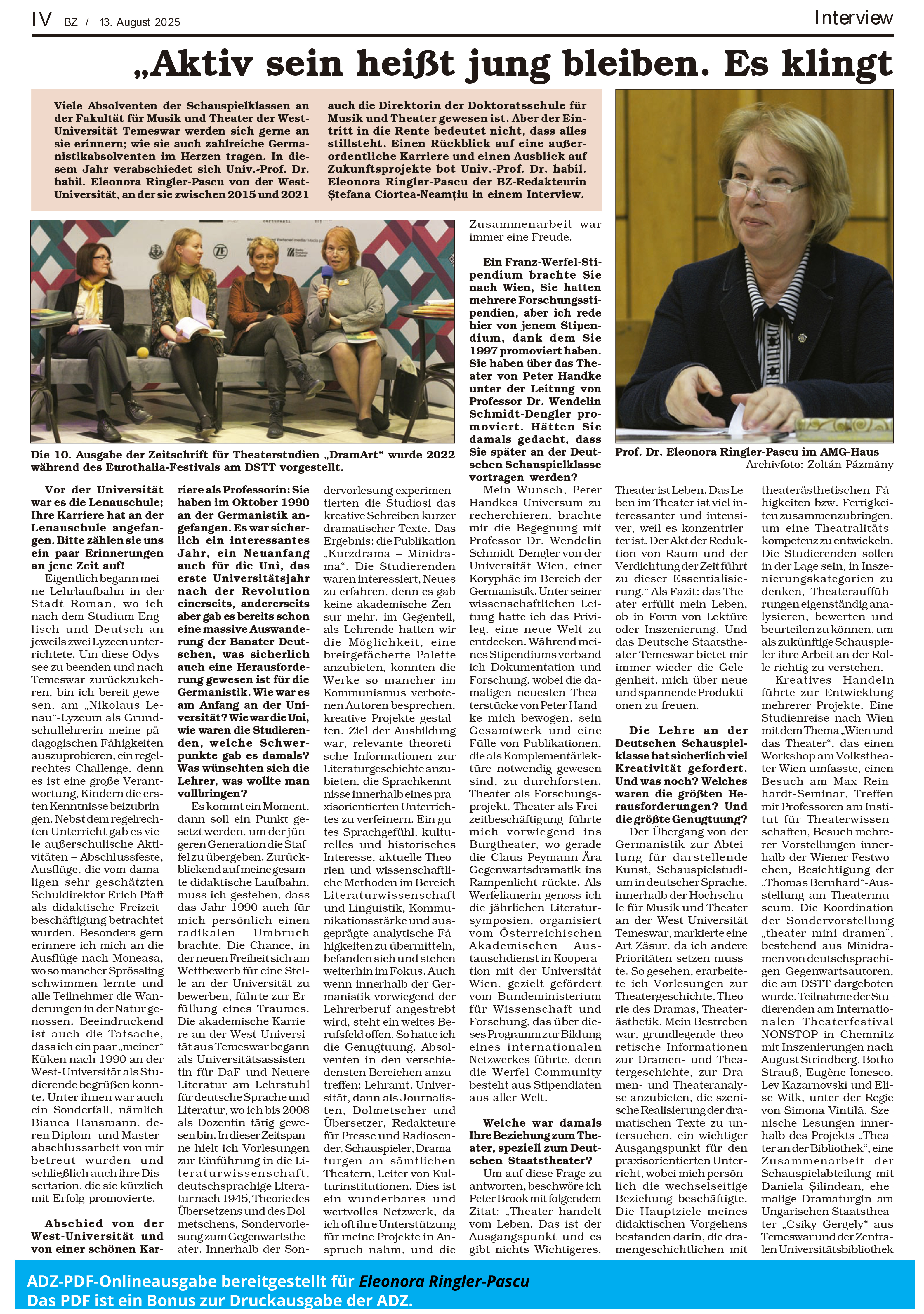 Entrevista a la Prof. Eleonora Ringler-Pascu (Universitatea de Vest din Timișoara), quien ha dedicado su vida a la docencia, a la investigación y al TEATRO.