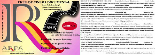 | Cicle de Cinema Documental. Els dijous d'Abril ARPA (Ateneo Republicano de Paterna) |