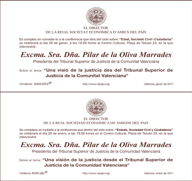 de la recientemente nombrada Presidenta del TSJ CV, Dª Pilar de la