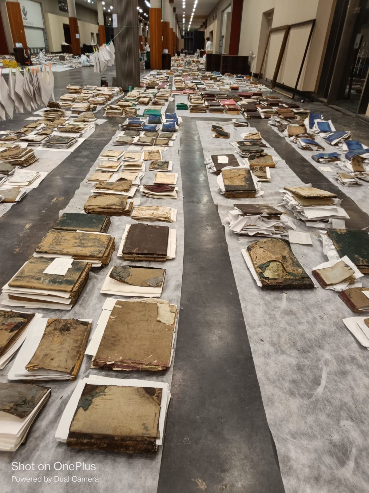 - Documents affected by the DANA in a pavilion at Feria Valencia, where researchers from the University of Valencia are working.