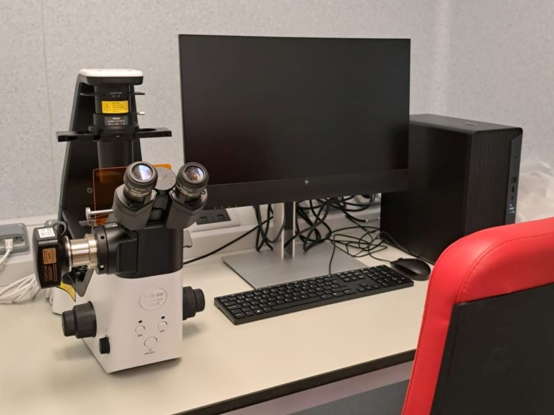 Fluorescence inverted microscope that allows for the visualisation and registration of fluorescent markings on cell cultures.