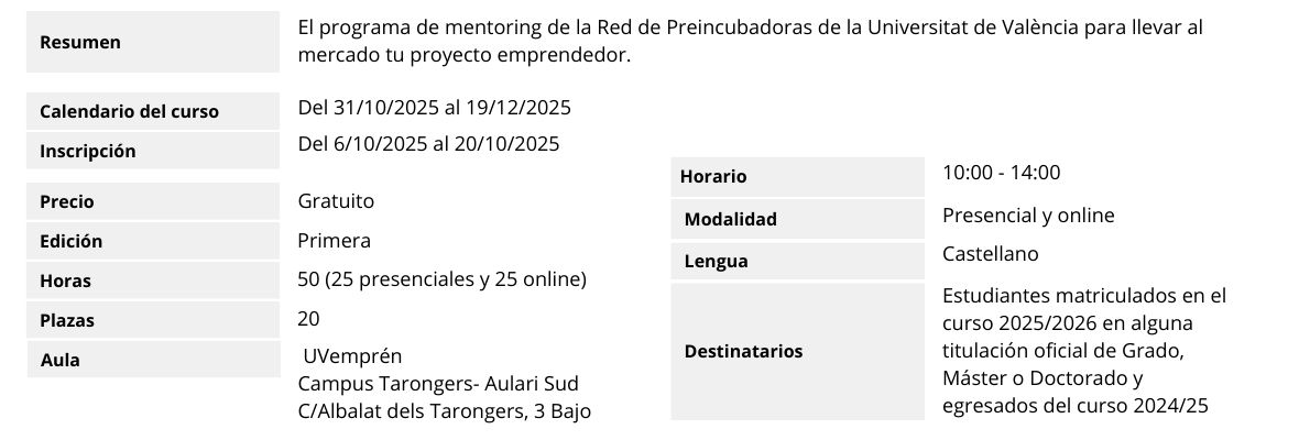 - Egresados de la Universitat de València del curso 2024/2025 con un proyecto nacido en programas de UVemprén.