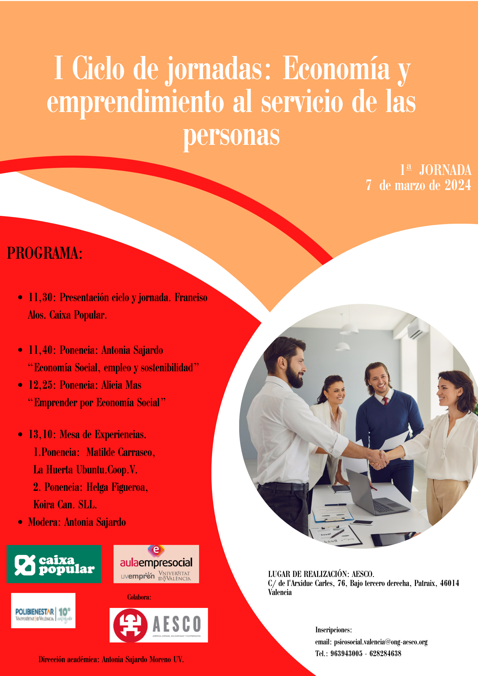 El pasado 7 de marzo el Aula Empresocial inició el Ciclo de Jornadas sobre “Economía y emprendimiento al servicio de las personas” patrocinado por Caixa Popular.