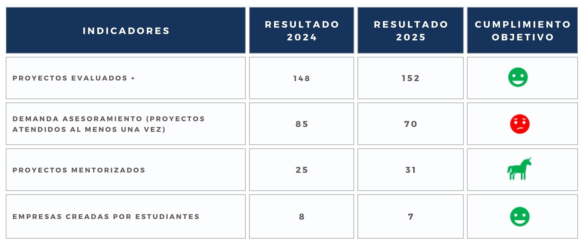 El periodo 2018–2025 muestra un avance sostenido que ha transformado el emprendimiento en una parte de la experiencia universitaria. Los resultados provisionales de 2025 confirman esta tendencia: