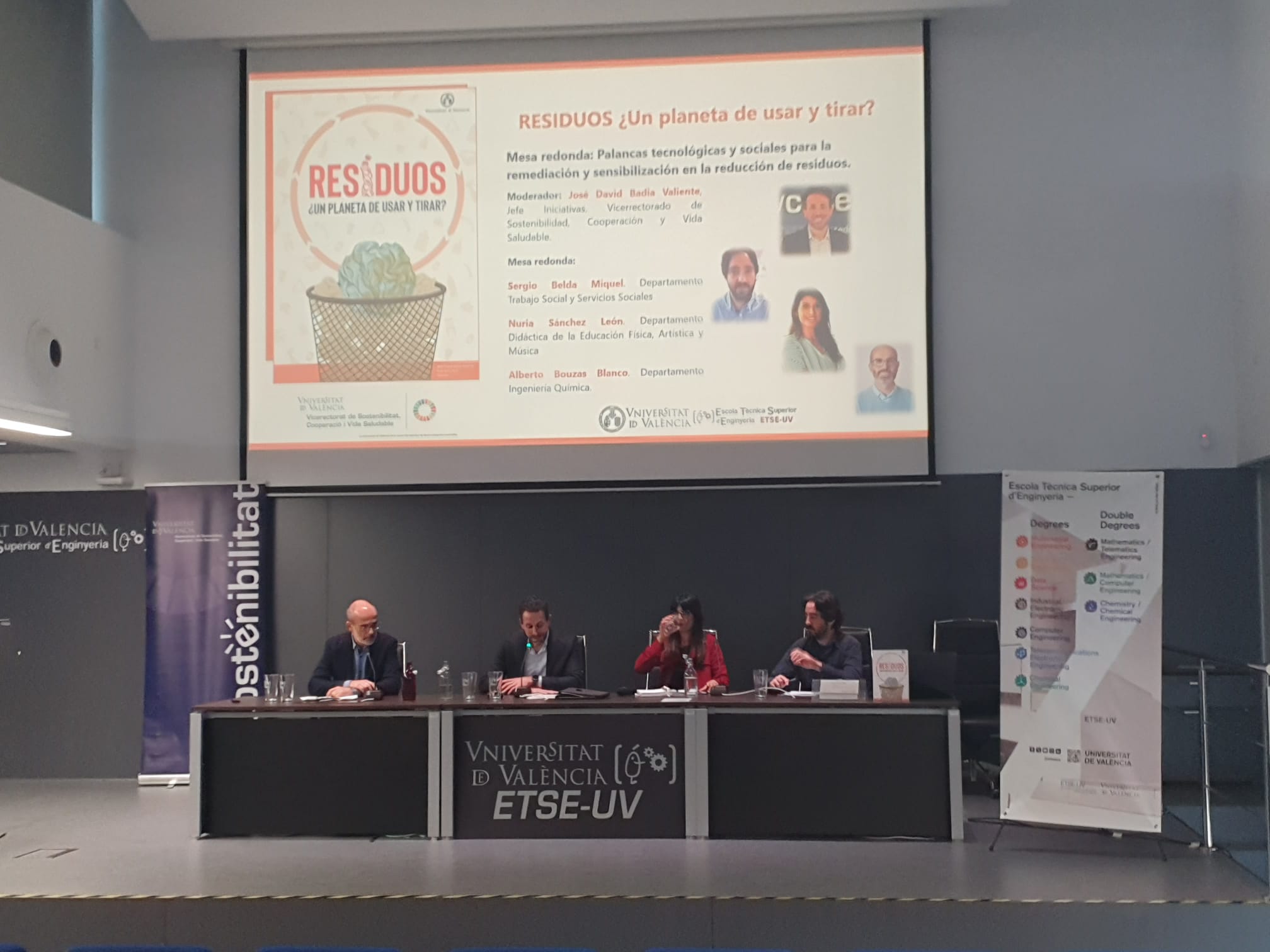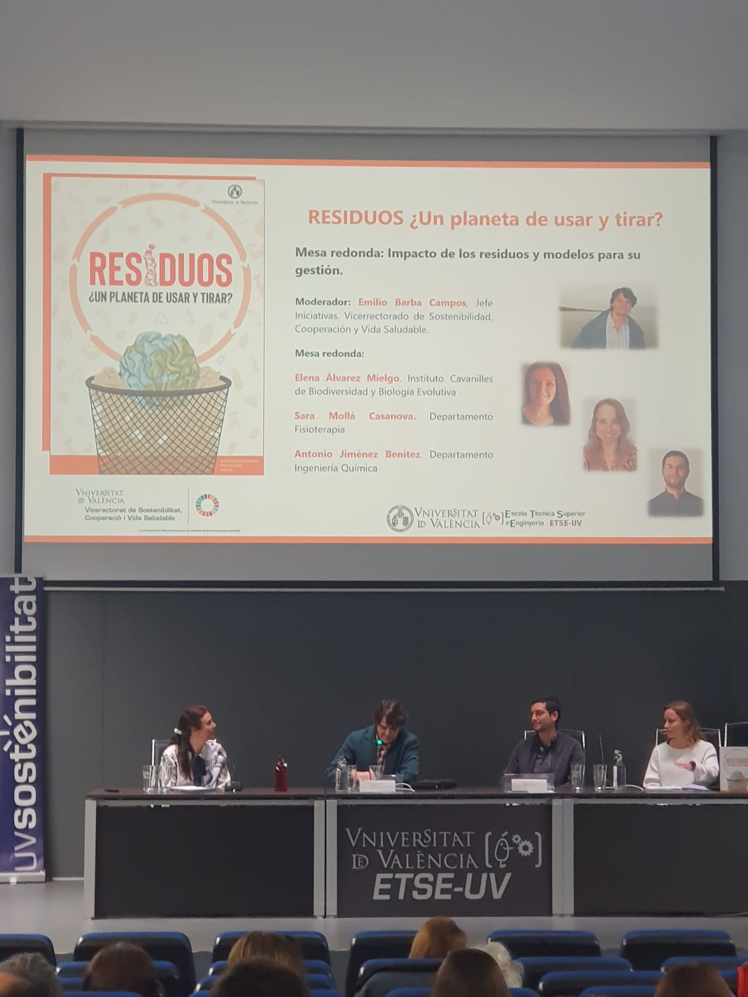 Presentada por la Vicerrectora de Sostenibilidad, Cooperación y Vida Saludable, Pilar Serra y por la subdirectora de la ETSE, Inma Coma, la jornada se dividió en dos mesas redondas moderadas por el Jefe de Iniciativas de Huella de Carbono, Emilio Barba y el Jefe de Iniciativas de Gestión Sostenible de Residuos, José Badía y en las cuales participaron Elena Álvarez, Antonio Jiménez, Sara Mollà, Alberto Bouzas, Nuria Sánchez-León i Sergio Belda en representación de los autores del libro, puesto que se trata de una obra colaborativa de distintos especialistas de la UV para abordar el problema de los residuos desde diferentes ángulos: ambiental, social, económico, tecnológico, comunicativo y educativo.
