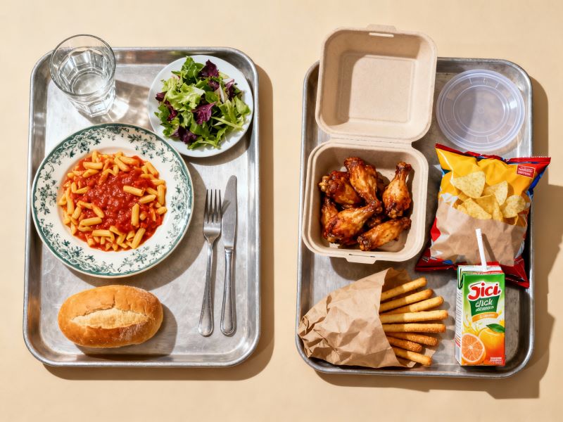 Compara els residus d'un menjar preparat al moment amb un de menjar per emportar
