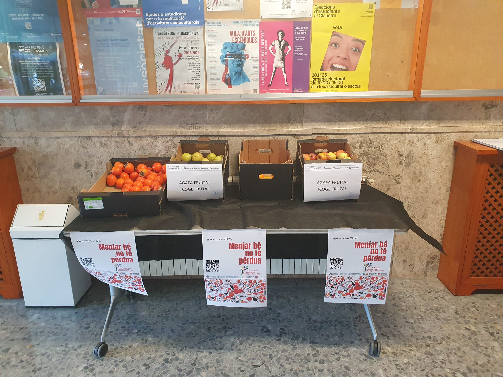 Promoguda pel Vicerectorat de Sostenibilitat, Cooperació i Vida Saludable, la fruita es repartix en 17 Facultats de la Universitat de València fins a esgotar existències. Esta acció s'alinea amb les accions de la Universitat per a promoure una alimentació més saludable i sostenible. Les bondats de la fruita fresca i de temporada ja s'arrepleguen en la guia elaborada per la Xarxa en 2019, Guia per al consum de fruites saludable i sostenible.