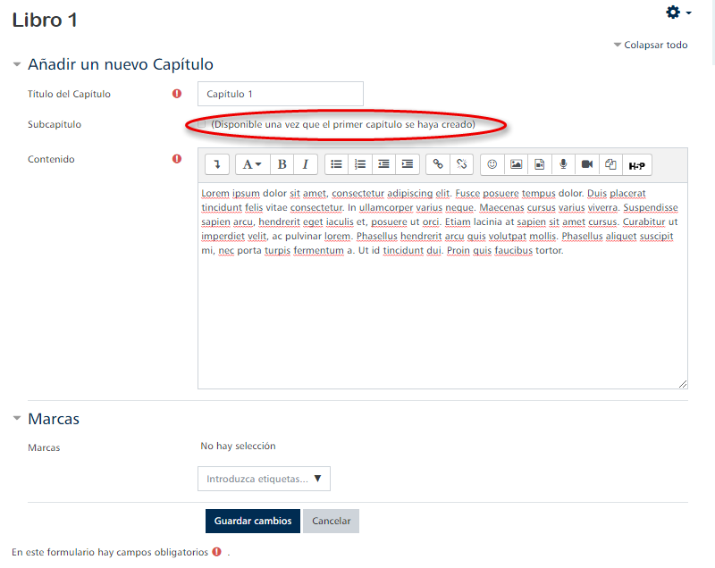 Once the book has been created, the page will take us to a page to add a new chapter to the book. In this case, we can only create sub-chapters once we have created the first chapter of our book.