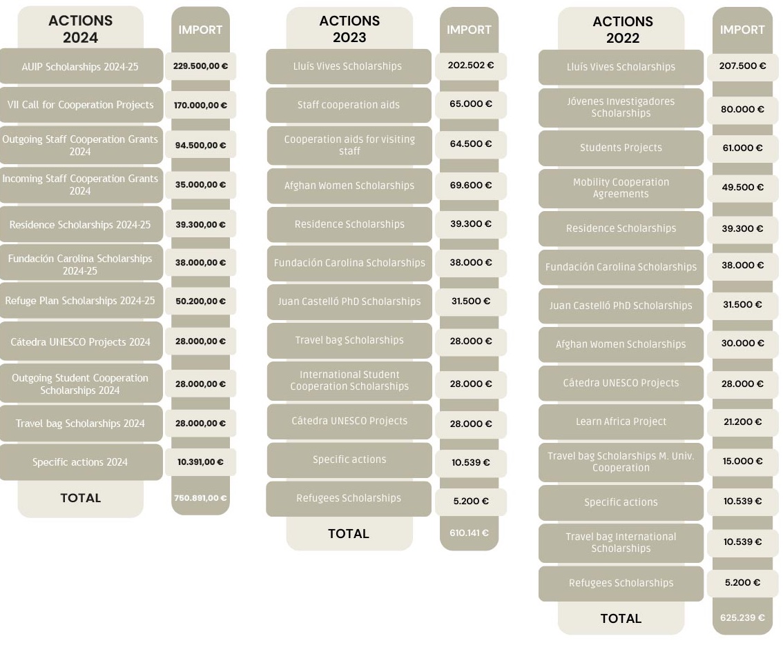 The University of Valencia has contributed in recent years to Official Development Aid. It should be noted that the contribution made in 2020 was diminished by the spread of the COVID 19 pandemic.