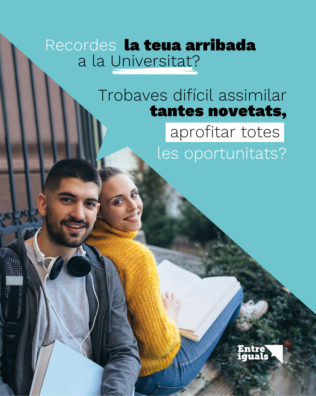 Si recordes la teua arribada a la Universitat de València, segur que et ve al cap que hi havia moltes novetats que assimilar i que no coneixies molt bé les oportunitats i els serveis que la Universitat posa a l’abast de l’estudiantat. Un mentor o una mentora Entreiguals és un company o una companya de cursos superiors que estableix una relació d’ajuda d’igual a igual, i que facilita la integració acadèmica, social, personal i institucional del nou estudiantat.