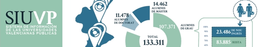 SIUVP (Valencian Public University System of Information) is a project born in 2012 from the collaboration of the 5 Valencian public universities with the aim of offering a complete set of indicators on its activity and results.