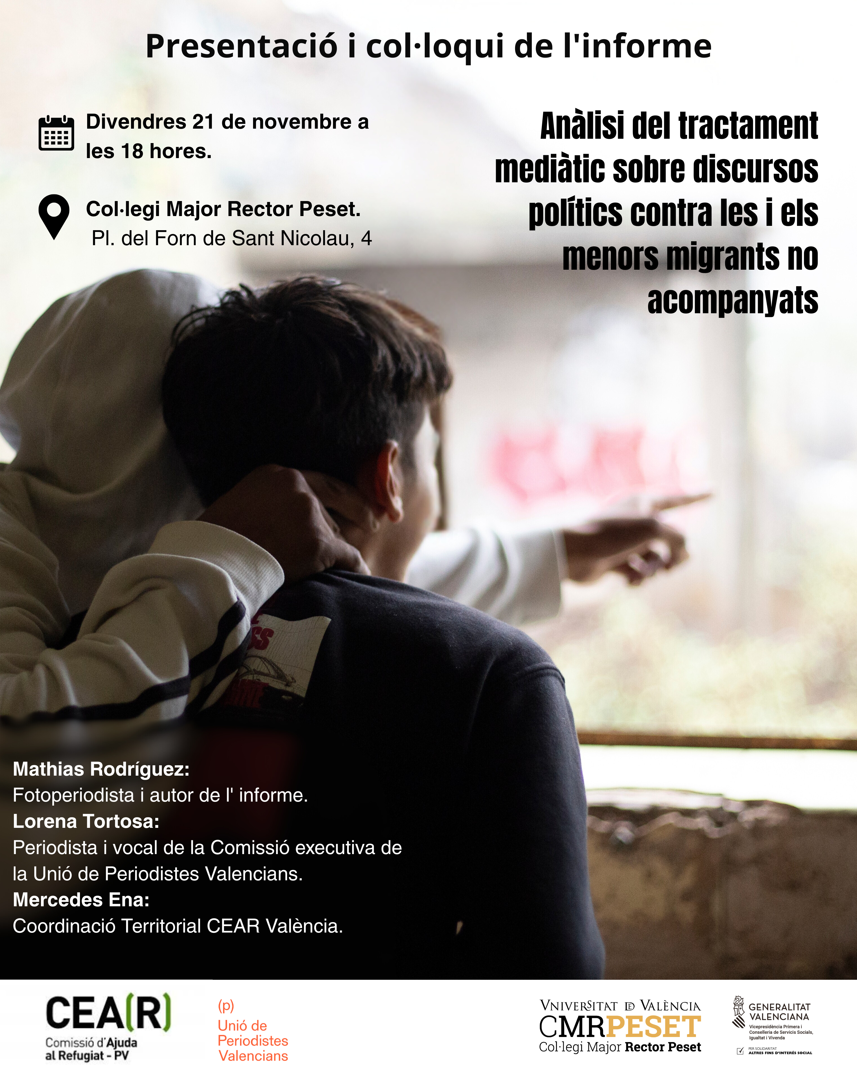 Organiza: CEAR, Unió de Periodistes Valencians y Colegio Mayor Rector Peset de la Universitat de València.