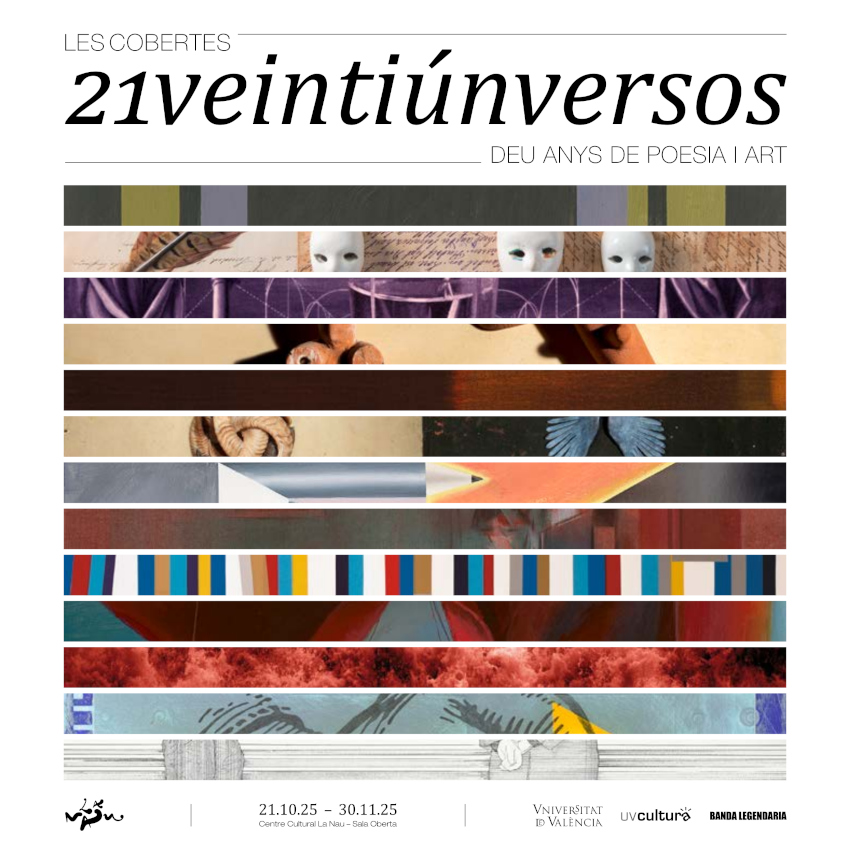 Per commemorar el desè aniversari d'aquesta singular aventura cultural, el Centre Cultural La Nau de la Universitat de València presenta l'exposició titulada Les cobertes de '21veintiúnversos', en què es mostren totes les obres d'art originals que constitueixen l'actual col·lecció de cobertes de la revista, tretze ara com ara, elaborades pels següents artistes (per ordre d'aparició): Jordi Teixidor, Carmen Calvo, Dis Berlin, Miquel Navarro, G. Peyró Roggen, Pamen Pereira, Antonio Rojas, Martí Quinto, Arancha Goyeneche, Joël Mestre, Isabel Oliver, Ximo Amigó i Manuel Sáez. A través d'aquestes obres es pot traçar un interessant recorregut per les diverses tendències de l'art contemporani espanyol de les darreres dècades. També s'exhibeixen exemplars de les reproduccions d'aquestes cobertes, que es van editar en cada ocasió per als mecenes de la revista.